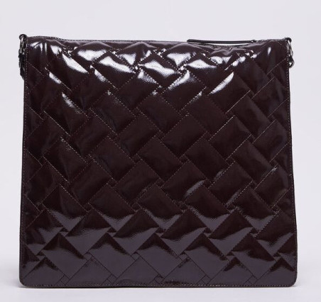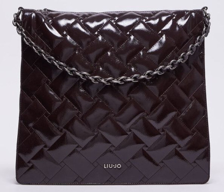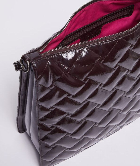 Tote bag ecosostenibile in PU effetto vernice con lavorazione matelassé. Comodo manico a catena intrecciata, logo in metallo sul davanti e chiusura con zip