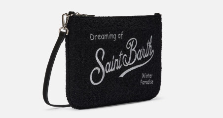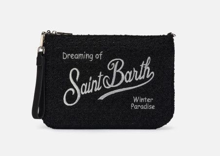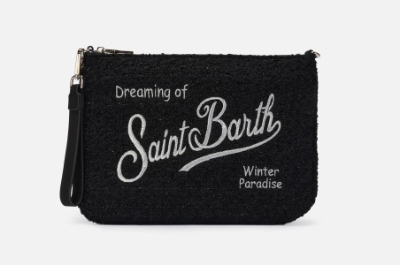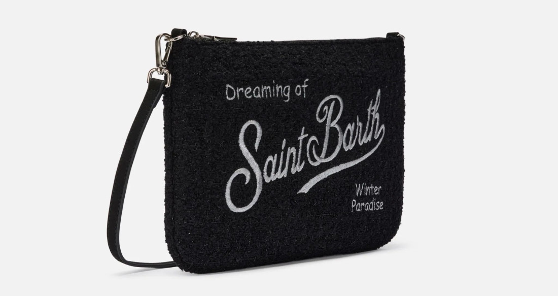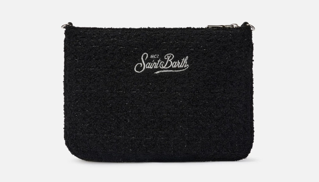 Il tweed conferisce un tocco iconico, classico e intramontabile. La borsa, piatta o a pochette, presenta manico e tracolla sia removibili sia regolabili, mentre il logo è ricamato sul tessuto.