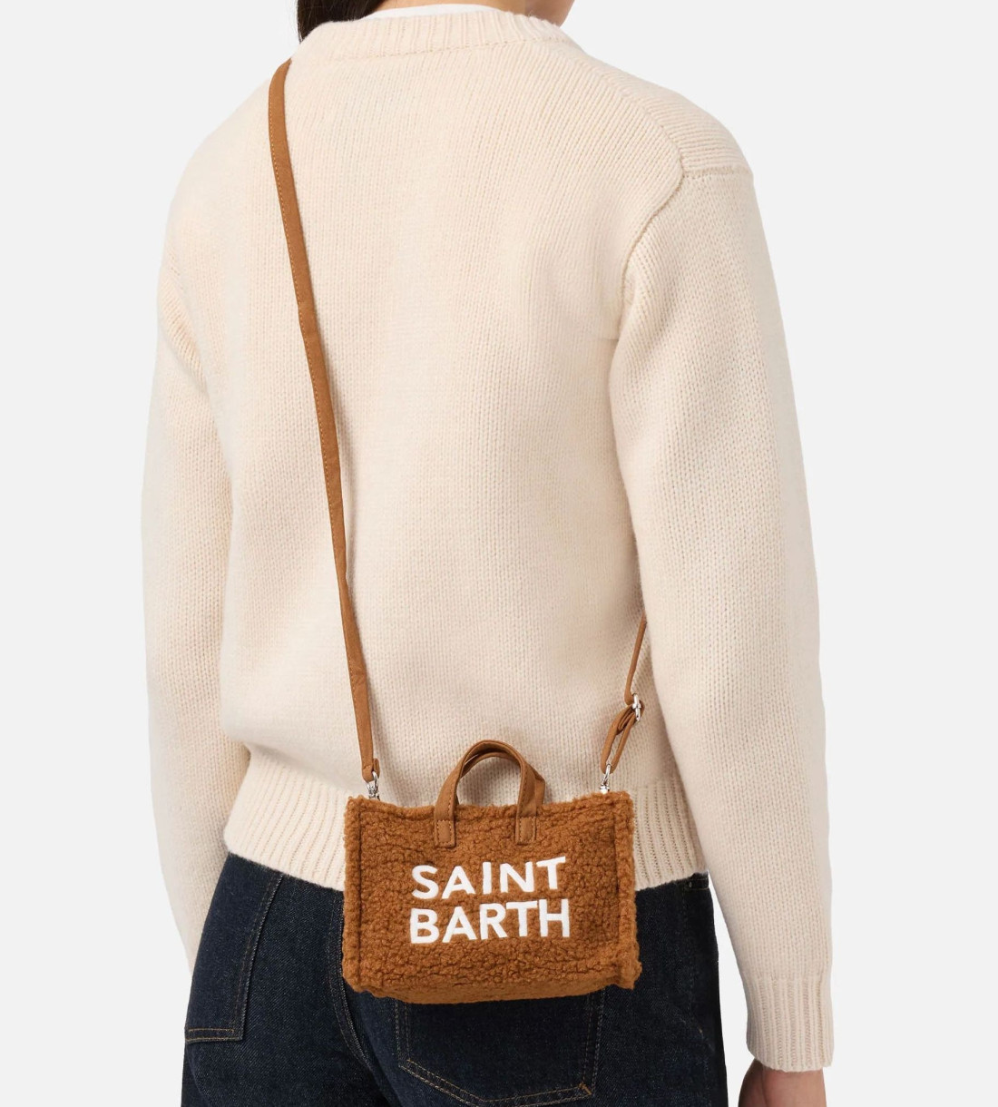 Minimal e morbida, la Phone Bag Teddy aggiunge un dettaglio distintivo. Si presenta come mini borsa porta telefono in sherpa, con tracolla removibile e regolabile e logo ricamato.