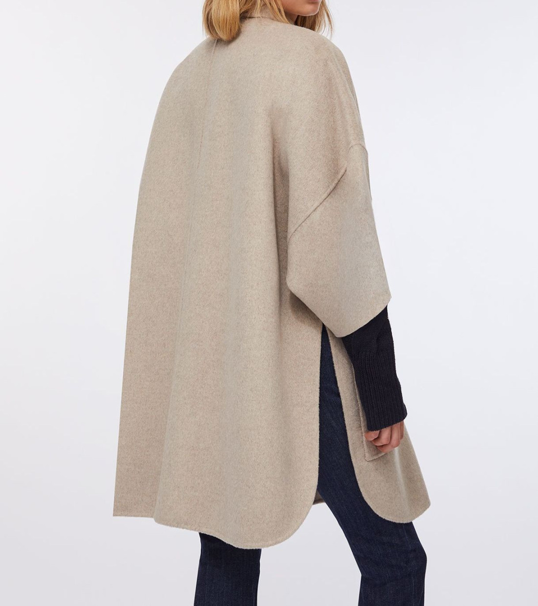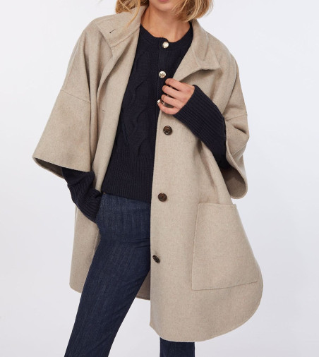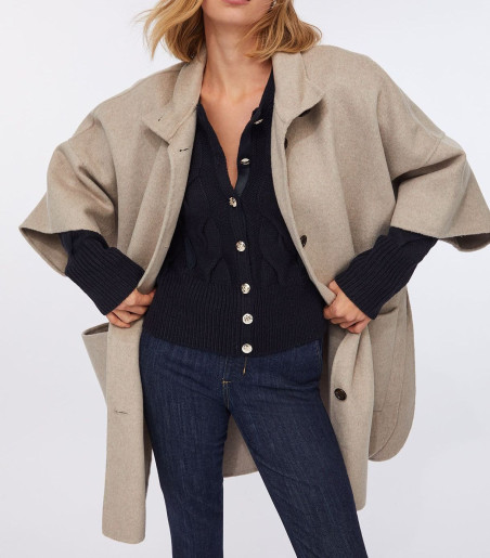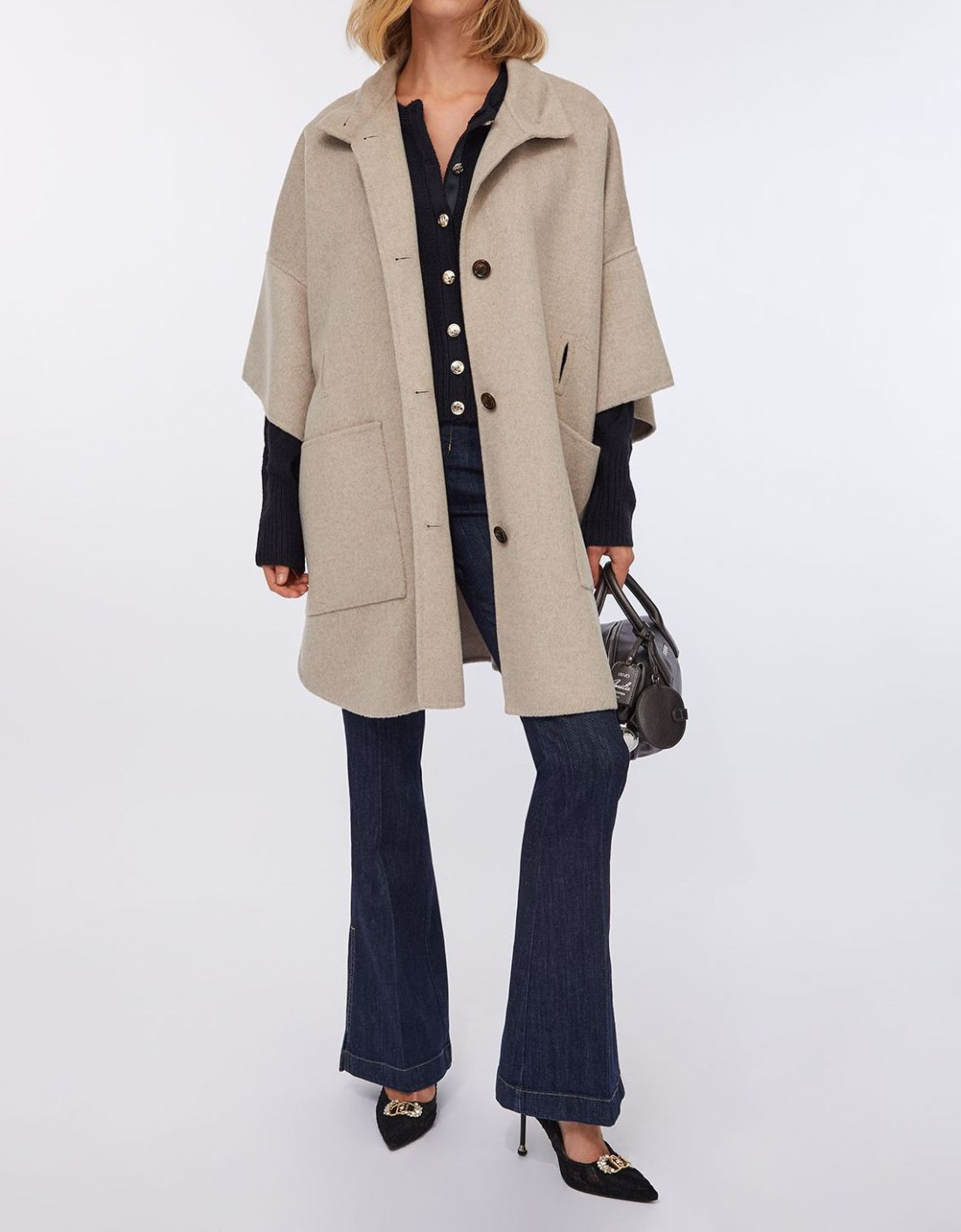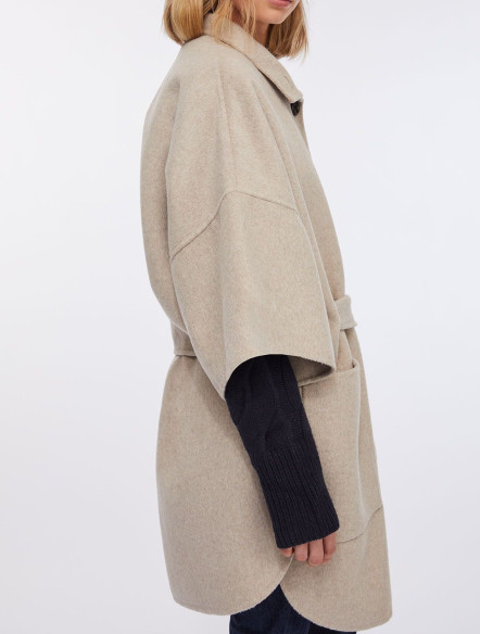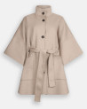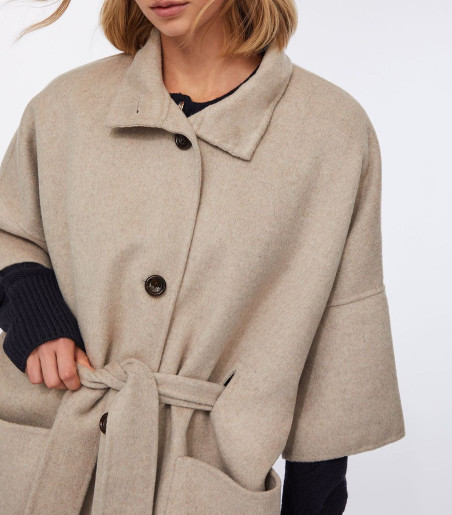 Cappotto in panno di misto lana con collo alto e maniche a kimono. È dotato di tasche sui lati, spacchi laterali e cintura sur ton abbinata. Chiusura con bottoni. Composizione: Tessuto principale: 50% Poliestere, 50% Lana