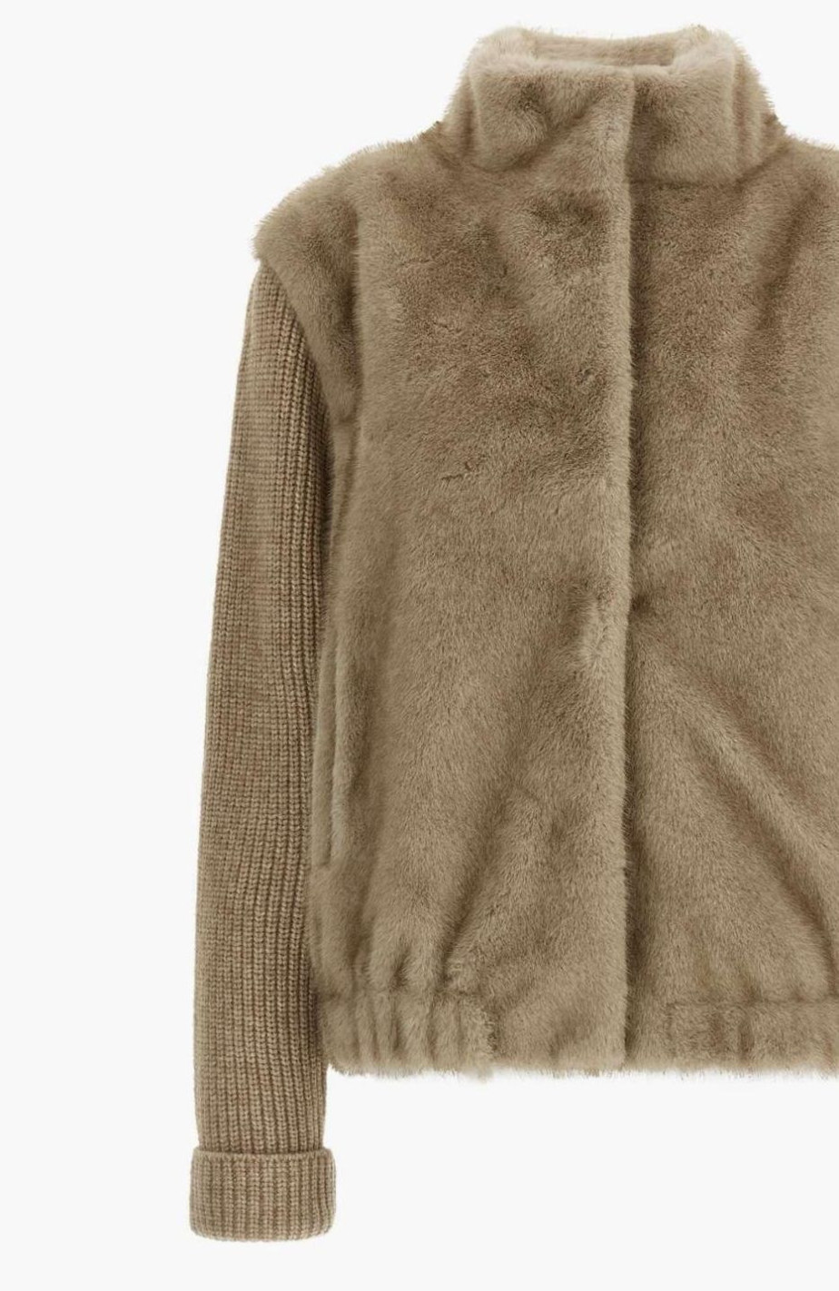 Il bomber in ecopelliccia da donna è la scelta ideale per aggiungere un tocco di stile e comfort al guardaroba invernale. Caratterizzato da un collo alto avvolgente e una chiusura frontale con bottoni a pressione, il modello è arricchito da tasche laterali pratiche e maniche lunghe in maglia di lana con polsino risvoltato. Il ricamo del logo tono su tono offre un dettaglio sofisticato e discreto, mentre lelastico sul fondo assicura una vestibilità comoda e aderente. Il colore beige neutro lo rende facilmente abbinabile, mentre la vestibilità regolare e il fit true to size garantiscono una calzata perfetta. Realizzato in un mix di 50% acrilico, 28% poliestere e 22% nylon, è perfetto per look casual, streetwear elegante o outfit da giorno invernali.