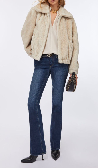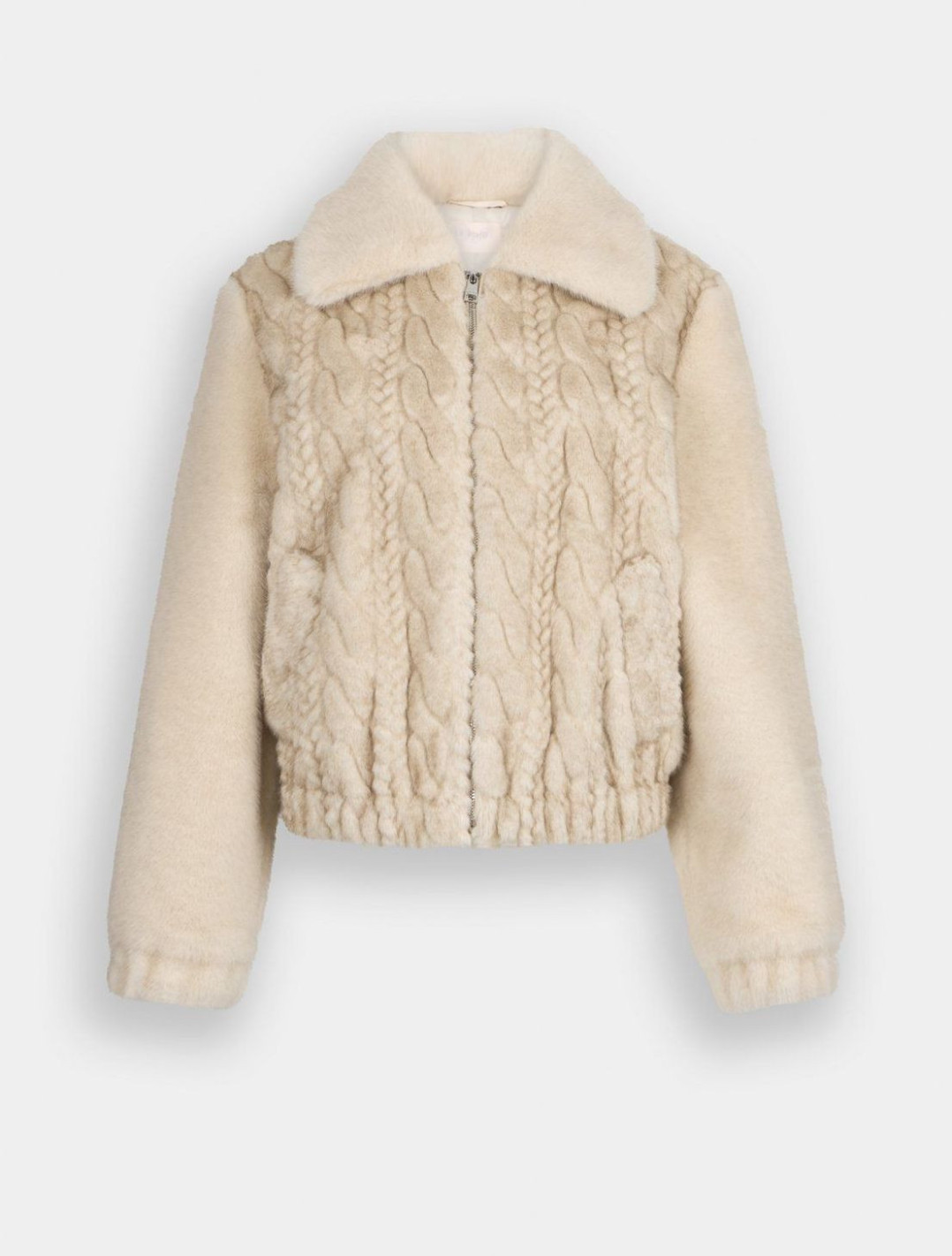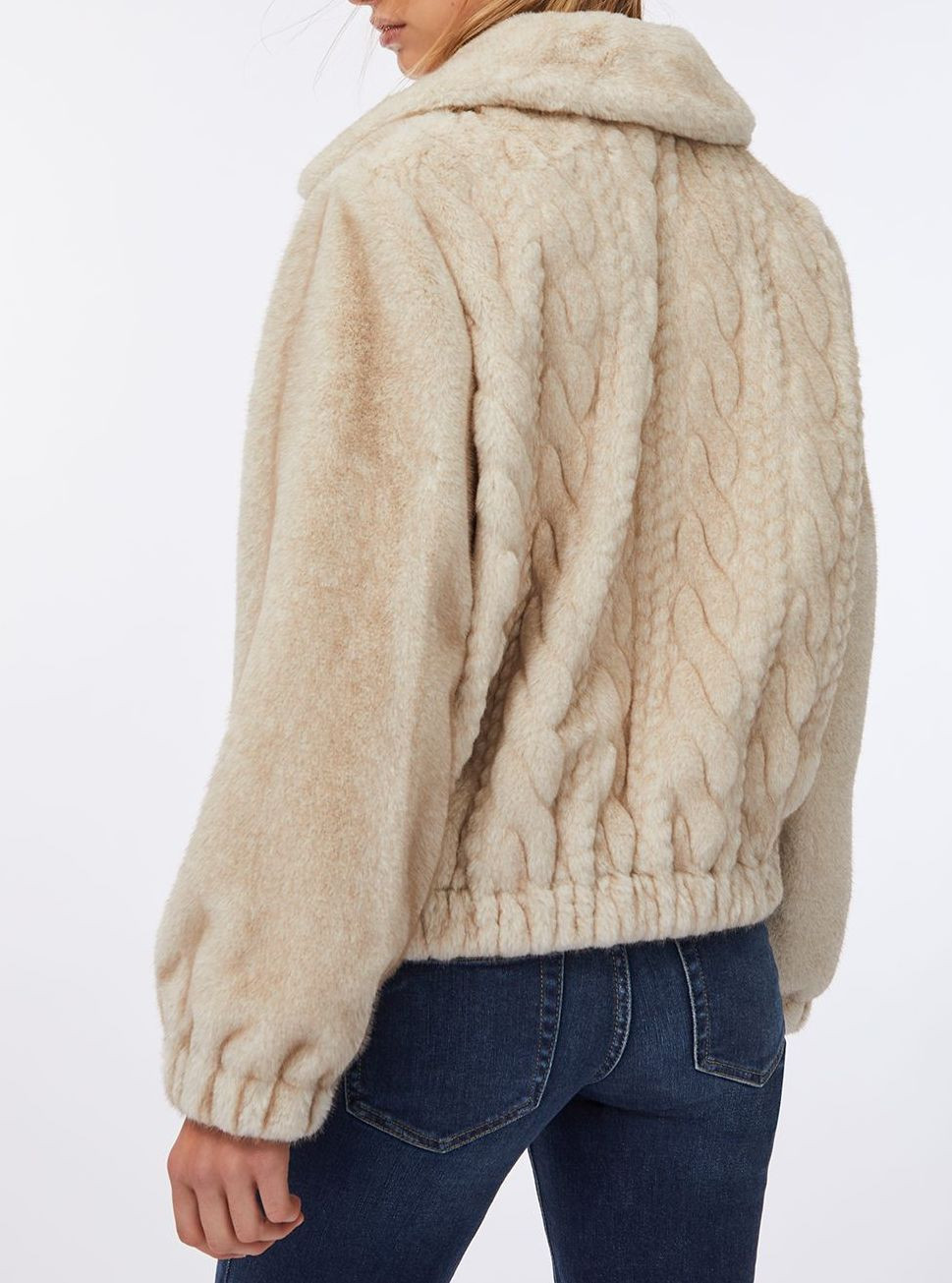Bomber in morbido tessuto teddy con trecce sul davanti e colletto oversize. Comode tasche, chiusura con zip e elastico sul fondo e sui polsi. Composizione: tessuto principale e secondario in 100% poliestere, fodera principale e secondaria in 100% poliestere, spalmatura in 100% resina poliuretanica.