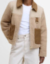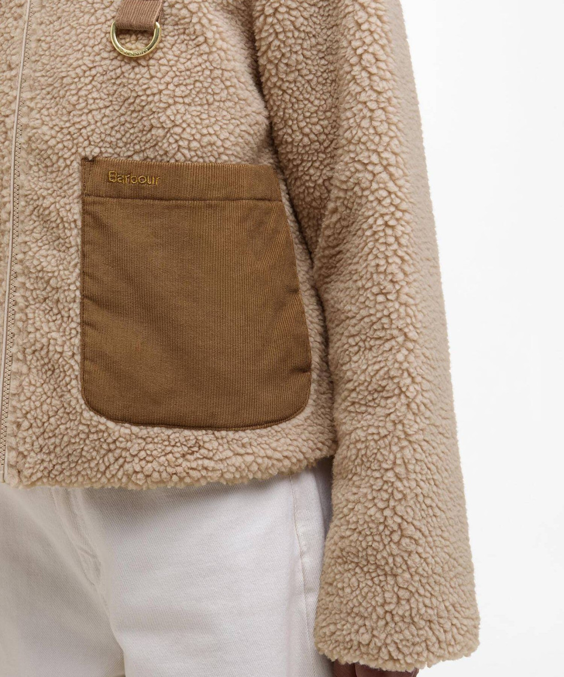Giacca pile impreziosita dall'iconico dettaglio con anello a D e rifinito da dettagli in pile e a coste sottili a contrasto sulle tasche.