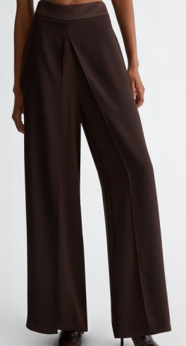 Pantaloni a palazzo in envers satin con cintone elastico in vita e piega sul davanti. Chiusura sul retro con zip.