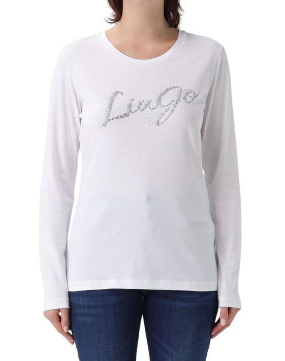 T-shirt da donna in jersey di cotone con maniche lunghe e logo con strass sul davanti. Composizione: 100% cotone.